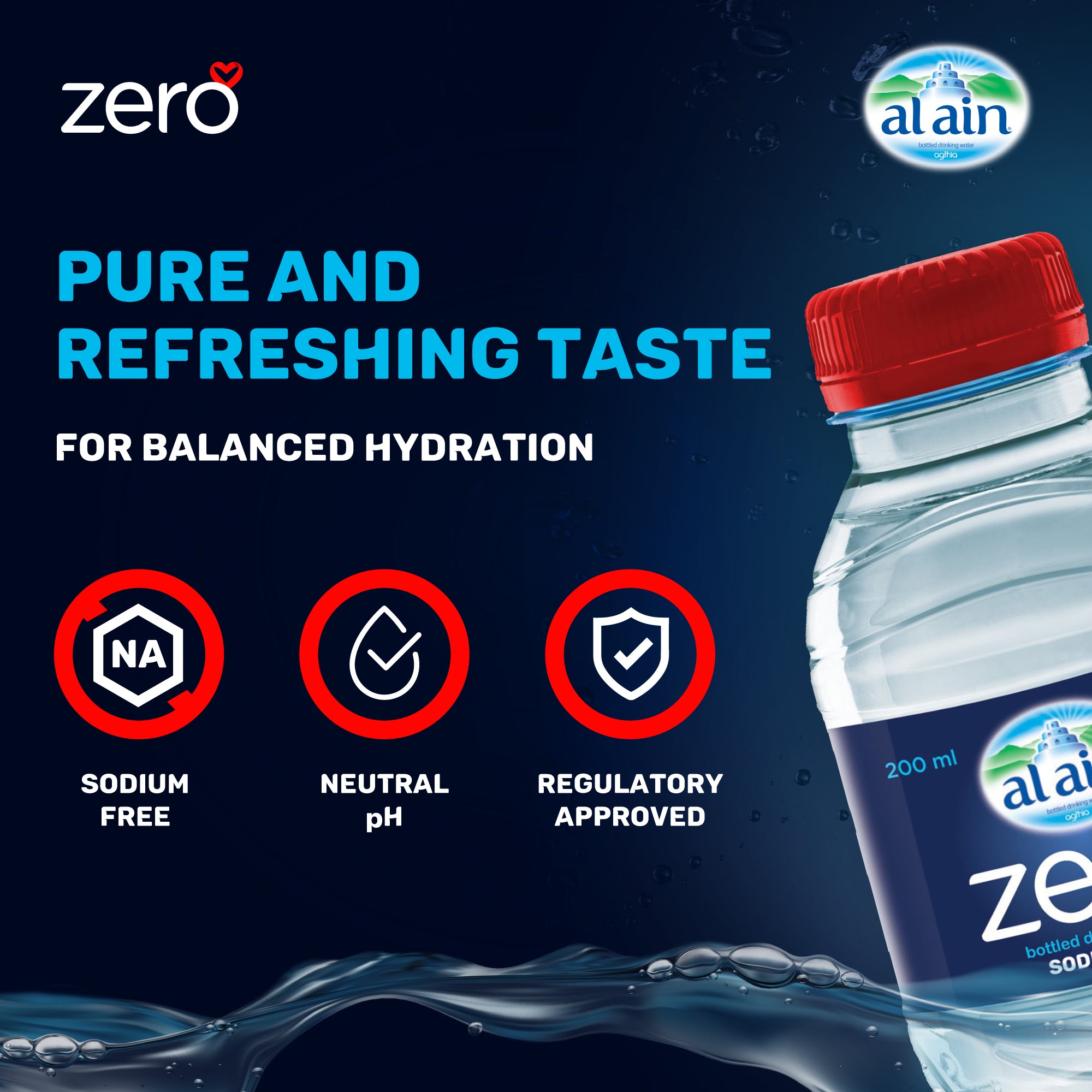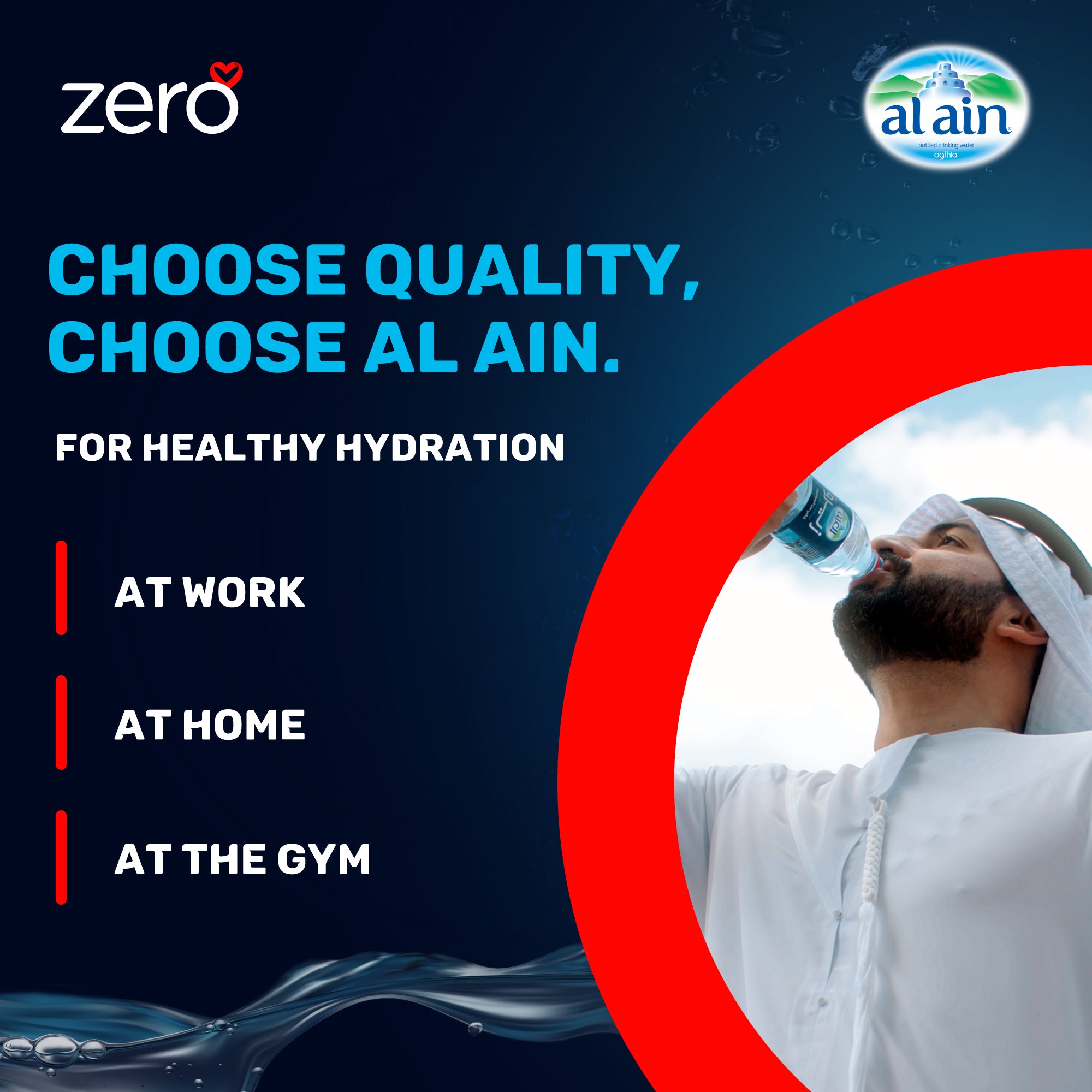 CHOOSE QUALITY, CHOOSE AL AIN: Al Ain Zero bottled water is a pH-neutral, sodium-free, and regulatory-approved water, specifically developed to meet your healthy hydration requirements.